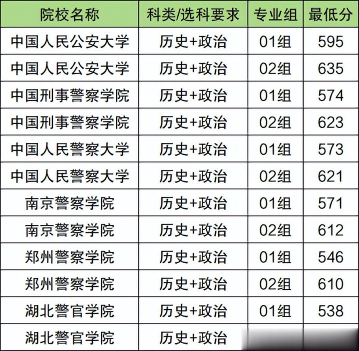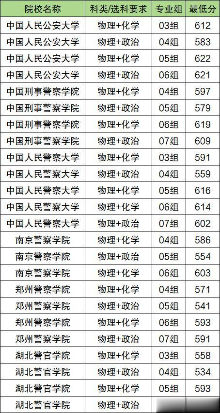 中国人民公安大学:历史组595分、物理组583分;